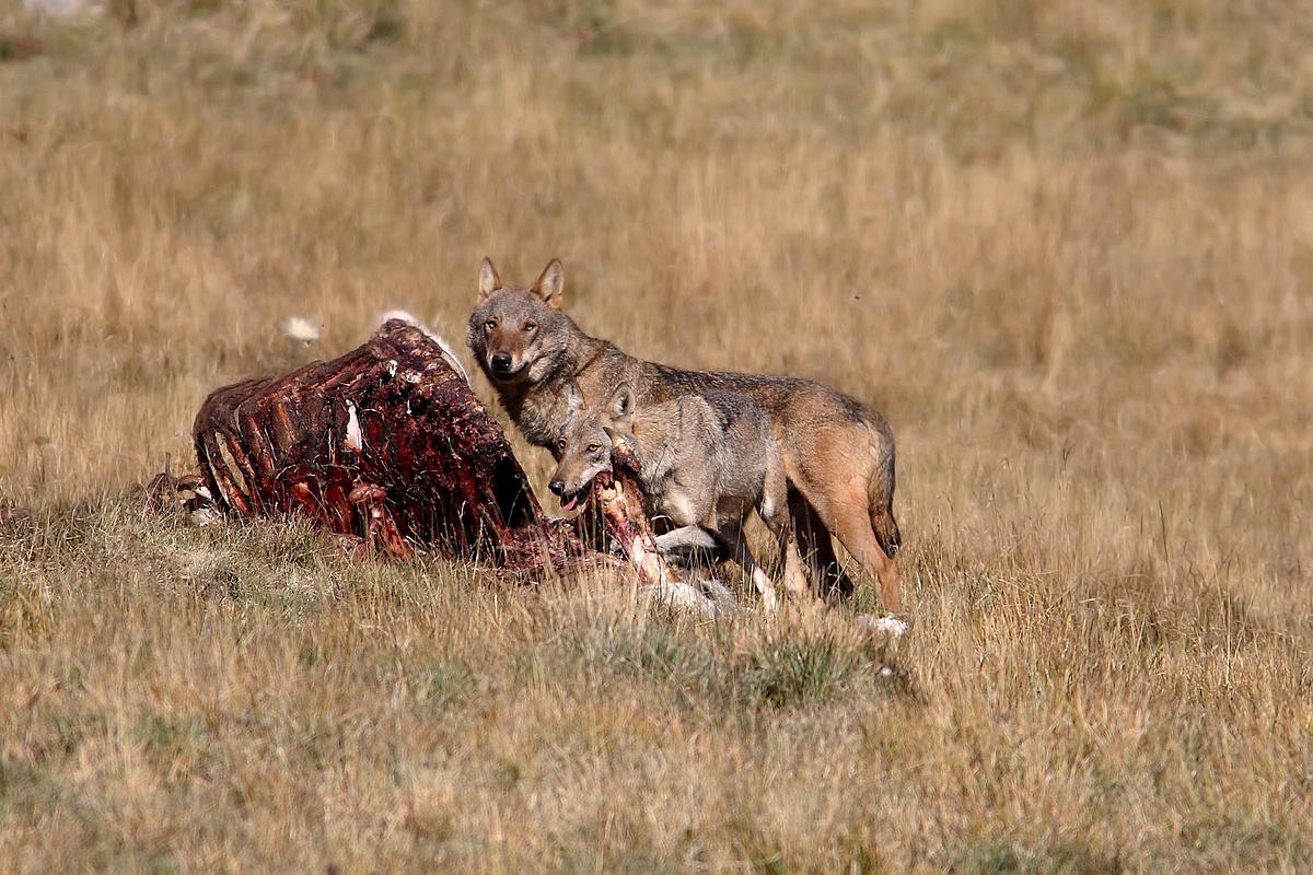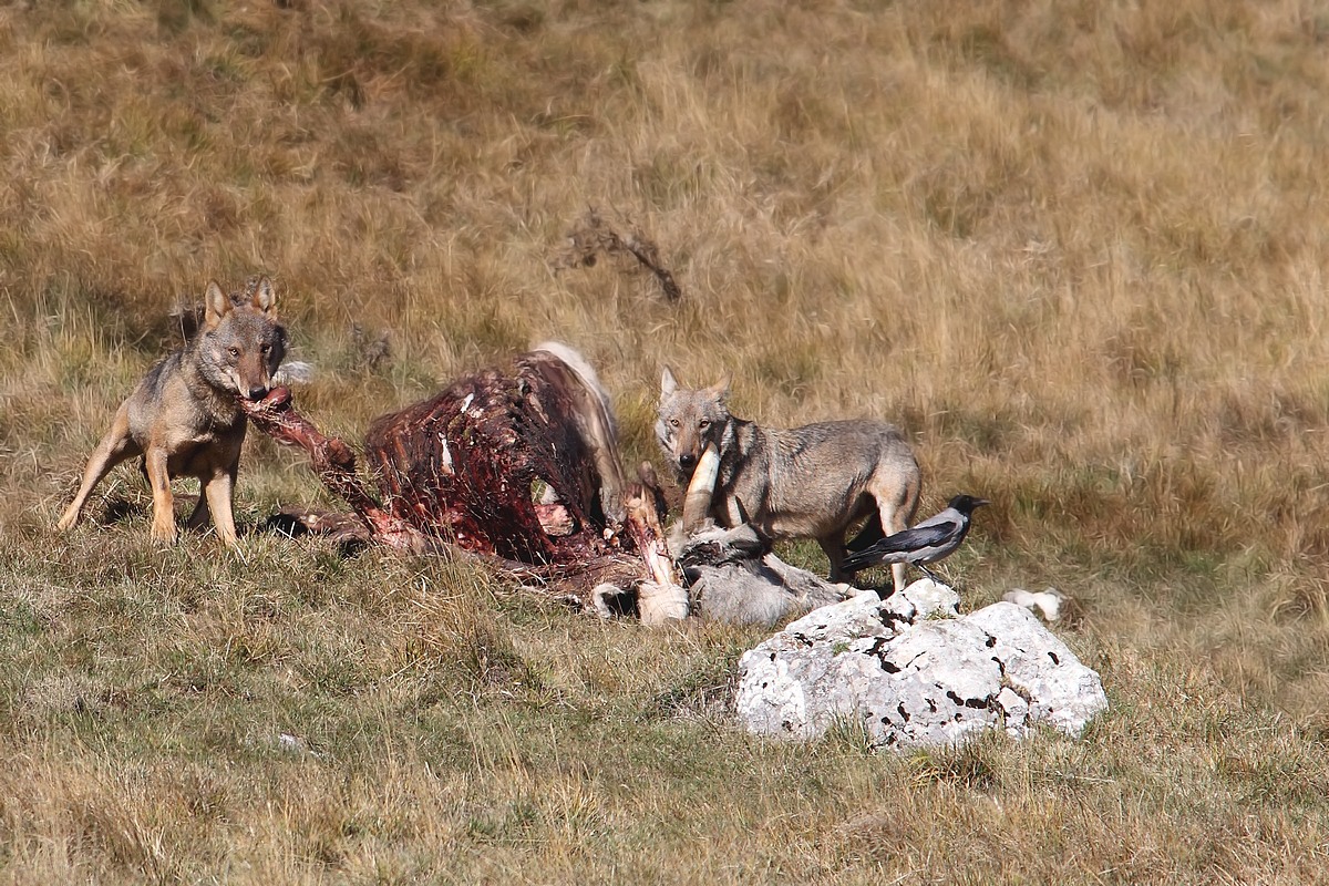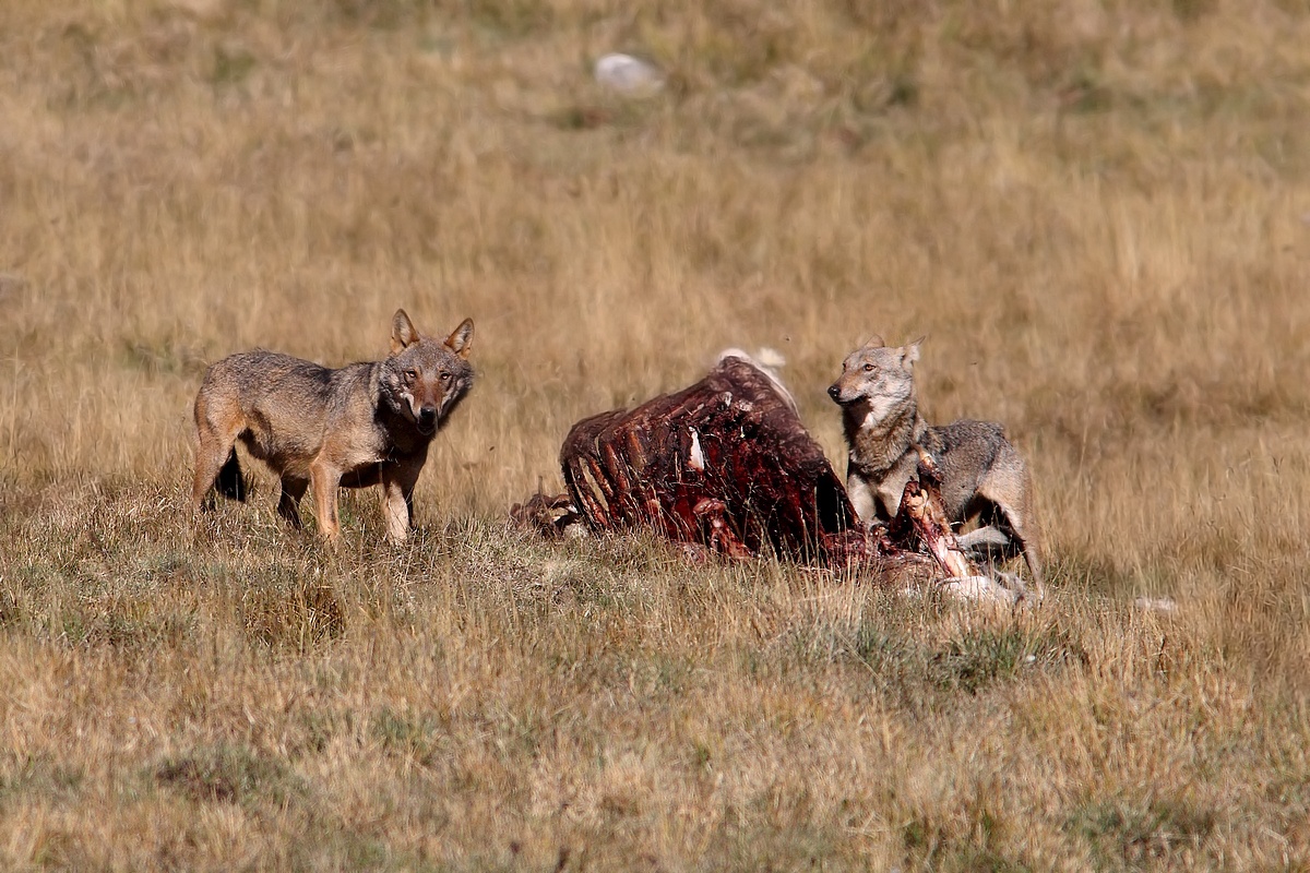 Pubblico con molto piacere lo straordinario "scoop" fotografico di Maurizio Passacantando, fotografo e naturalista aquilano, che si è imbattuto in una coppia di magnifici lupi intenti a mangiare una carcassa.